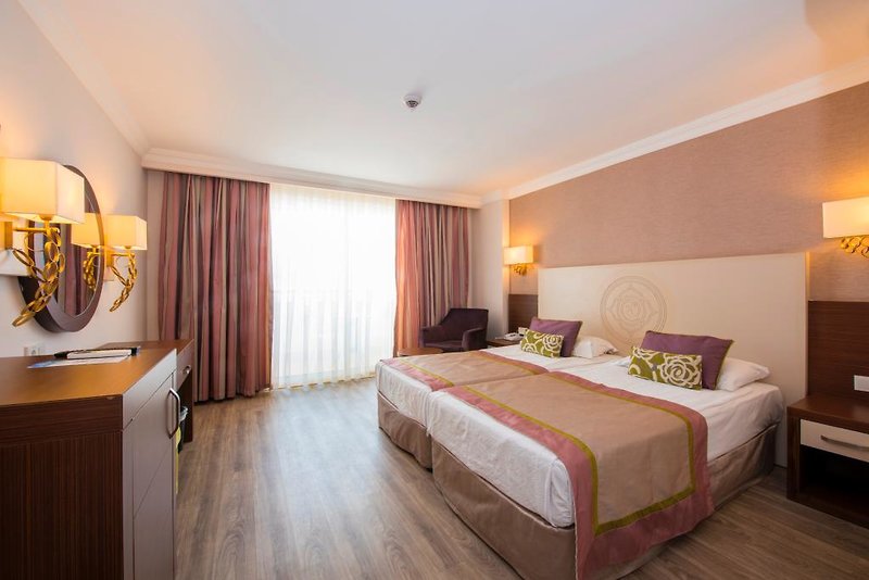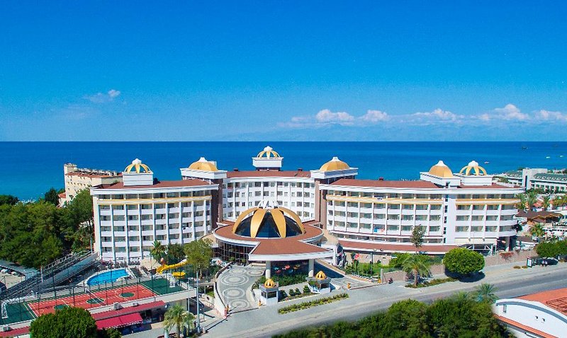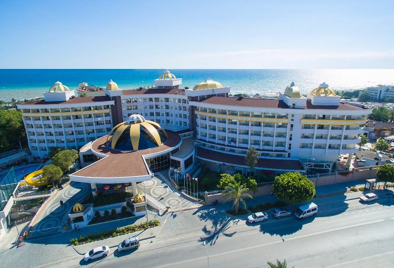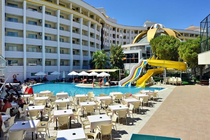 Obľúbené vďaka priateľskej atmosfére. Vo vstupnom priestore vás privítajú nadrozmerné kvety, ktoré v noci farebne žiaria. Strechu zdobia kupole, ktoré pripomínajú kvety. Tu sa vám bude dariť! Vaše výhody: Pestrý animačný a zábavný program Atraktívne, priestranné izby Dobrá kulinárska ponuka Poloha: do centra mesta: Side, cca 3 km od letiska: Antalya, cca 55 km od pláže: cca 200 m centrálne Piesočná pláž: mierne svahovitý, patrí ku komplexu, dĺžka cca 70 m, ležadlá, plážová osuška/osuška (za poplatok), kyvadlová doprava na pláž (cca 1.4.-31.10.) Vybavenie: oficiálna kategória krajiny: 5 hviezdičiek Otvorenie : 1993, posledná rekonštrukcia: 2014 Počet budov: 3, počet poschodí v hlavnej budove: 6 Počet bytových jednotiek: 297 Počet lôžok: 750 Veľkosť zariadenia: cca 12 000 m2 Možnosti platby: American Express, MasterCard, Visa Recepcia/recepcia (24-hodinová recepcia) Lobby, výťah, hotelový trezor (za poplatok) WLAN, v celom komplexe diskotéka, divadelný kiosk, kaderníctvo 2 à la carte reštaurácie: miestna kuchyňa, ryby/morské plody (za poplatok) Bufetová reštaurácia: s terasou, lobby bar, bar pri bazéne, snack bar, 5 barov Návšteva lekára v hoteli (za poplatok), práčovňa (za poplatok), zmenáreň vnútorný bazén: 35 m2, vyhrievaný, sladká voda, od 15.3. 30. apríla. a od 1. októbra do 30. novembra. 1.4.-31.10., 60 m2, sladká voda, tobogány: 2 (hodinová prevádzka), ležadlá, ležadlá, osušky (za poplatok) 1 bazén: relaxačný bazén, cca 1.4.-31.10. 70 m2, sladká voda, ležadlá, ležadlá, osuška (za poplatok) Dvojlôžková izba: 21-25 m2, hlavná budova, výhľad na krajinu, sprcha alebo vaňa, WC, sušič vlasov, laminátová podlaha, klimatizácia, individuálne nastaviteľná , minibar, doplnenie pri príchode, voda, trezor (za poplatok), 1 TV (satelitná TV), balkón dvojlôžková izba prístavba: 21-25 m2, prístavba, výhľad na krajinu, sprcha alebo vaňa, WC, fén, laminátová podlaha, klimatizácia, individuálne nastaviteľná, minibar, dopĺňanie pri príchode, voda, trezor (za poplatok), 1 TV (satelitná TV), balkón dvojlôžková izba na boku. Výhľad na more: 21-25 m2, hlavná budova, výhľad na more (bočným), sprcha alebo vaňa, WC, sušič vlasov, laminátová podlaha, klimatizácia, individuálne nastaviteľná, minibar, doplnené pri príchode, voda, trezor (za poplatok), 1 TV (satelitná TV), balkón dvojlôžková izba s výhľadom na more: 21-25 m2, hlavná budova, výhľad na more (priamy), sprcha alebo vaňa, WC, sušič vlasov, laminátová podlaha, klimatizácia, individuálne nastaviteľný, minibar, doplnenie pri príchode , voda, trezor (za poplatok), 1 TV (satelitná TV), balkón Stravovanie: All inclusive: raňajky (švédske stoly), neskoré raňajky do 10:30 hod., obedy (švédske stoly), večere (švédske stoly), nápoje zdarma poplatok (nealko, pivo, voda, 10-23 hod.), káva/čaj a pečivo (23-18 hod.), minibar (denne dopĺňaný, voda) wellness v cene: sauna, hammam, wellness za poplatok ( čiastočne od poskytovateľov tretích strán): vírivé masáže, kozmetické procedúry, lekárske procedúry, šport a zábava v cene (čiastočne od poskytovateľov tretích strán): plážový volejbal, boccia, plážové športy, šípky, stolný futbal/stolný futbal Fitness miestnosť Aerobik, vodná gymnastika Tenis: Hard kurt, svetlo (za poplatok) Stolný tenis Denná animácia Večerná animácia ShowŠport a zábava za poplatok (niektorí poskytovatelia tretích strán): Banánový čln Vodný skúter Parasailing Požičovňa tenisového vybavenia Tipy a informácie: len pre dospelých nad 18 rokov rokov Domáce zvieratá nie sú povolené