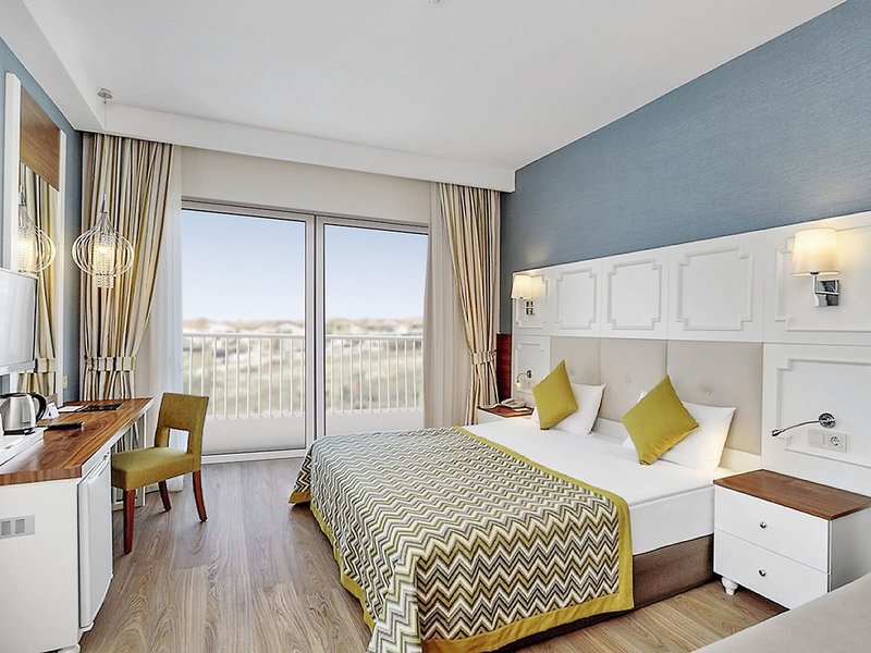 Veľká dvojlôžková izba (DZL, cca 32 m²), klimatizácia, telefón, TV, Wi-Fi, minibar, príslušenstvo na prípravu čaju/kávy, trezor (na prenájom), sprcha, WC, fén, balkón s výhľadom do vnútrozemia, voliteľne s výhľadom na bazén (DLP). Max. 3 dospelí + 1 dieťa