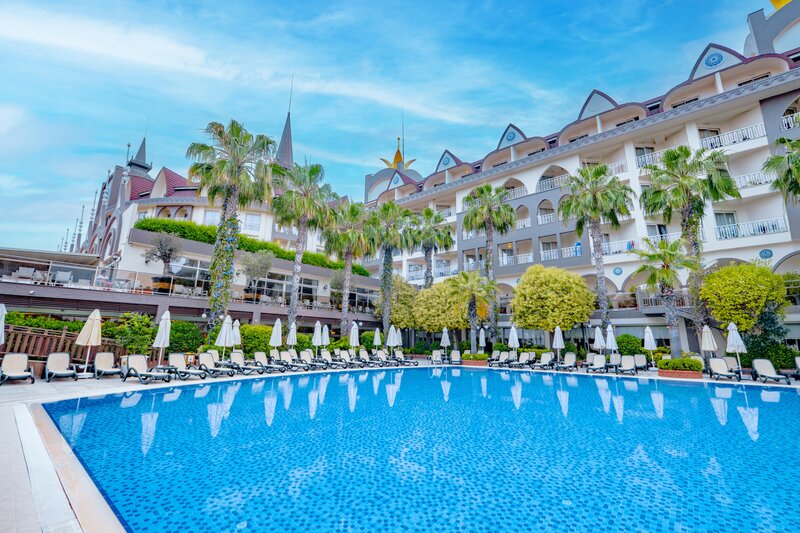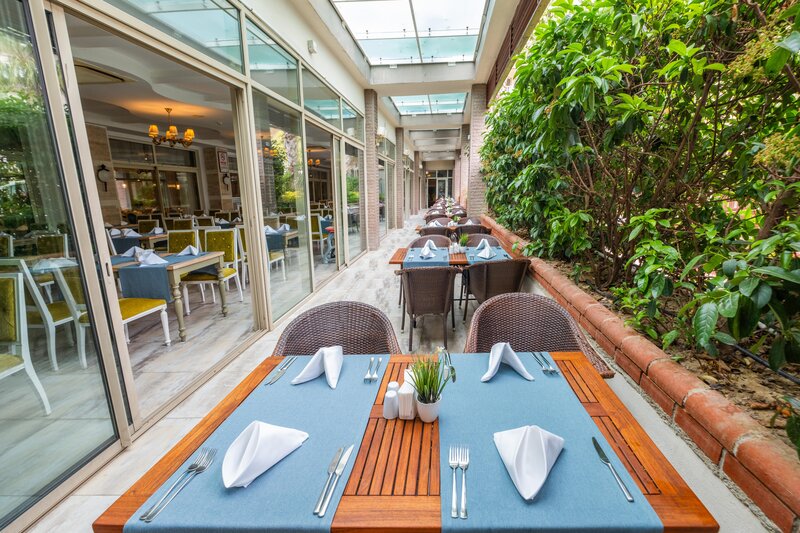Vybavenie: Záhrada, bazén, detský bazén, tobogán. Uteráky pri bazéne a na pláži (za poplatok), ležadlá, slnečníky a vankúše pri bazéne (za poplatok), plážový bar, bar pri bazéne/snack bar. Lobby, recepcia, lobby bar, TV miestnosť. Reštaurácia (bufet a à la carte) s národnou, talianskou a stredomorskou kuchyňou, terasa, minimarket, obchod, kaderníctvo, nočný klub. 513 izieb, 4 poschodia.