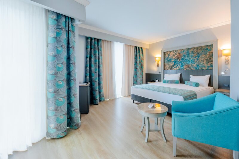 Dvojlôžková izba Deluxe (s výhľadom na bazén): Minibar (za poplatok). Kanvica. TV, telefón, internet (za poplatok), trezor (za poplatok). Kúpeľňa, sušič vlasov. Balkón. Max. 3 dospelí.