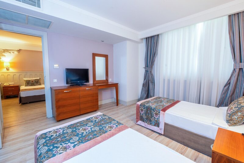 Štandardná rodinná izba (2 spálne): Minibar (za poplatok). Kanvica, uteráky. TV, telefón, trezor (za poplatok). Kúpeľňa, sušič vlasov. Balkón. Max. 4 osoby.