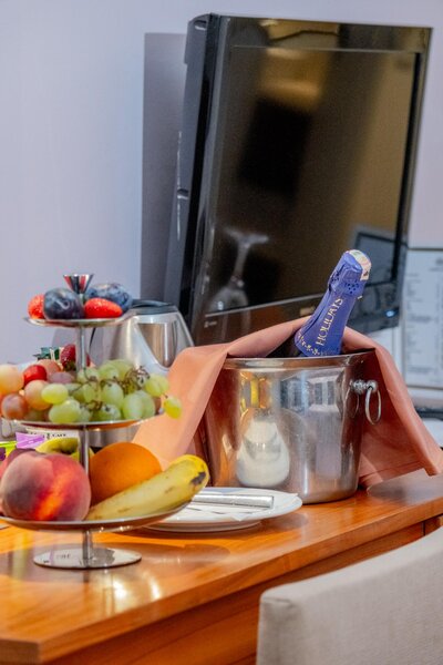 Standard Familienzimmer (2 Schlafzimmer): Minibar (geg. Geb.). Wasserkocher, Handtücher. TV, Telefon, Safe (geg. Geb.). Bad, Föhn. Balkon. Max. 4E.