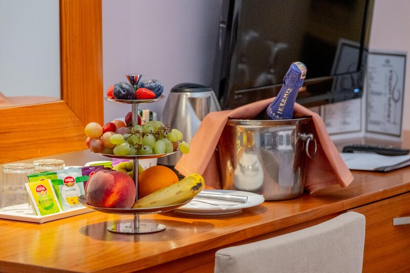 Ubytovanie: Štandardná izba: Minibar (za poplatok). Kanvica, uteráky. TV, telefón, trezor (za poplatok). Kúpeľňa, sušič vlasov. Balkón. Max. 3 osoby.