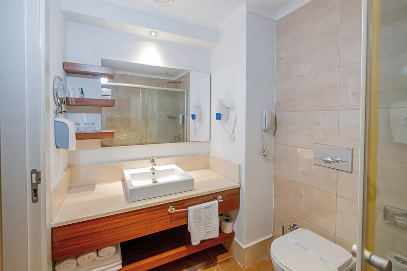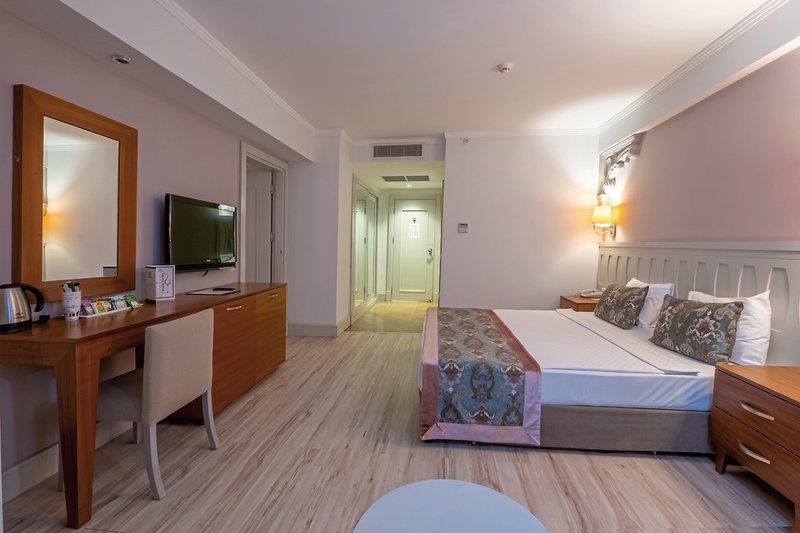 - 26-30 m2, 2 oddelené lôžka, výhľad na bazén, 1 kúpeľňa, sprcha, sušič vlasov, laminátová podlaha, klimatizácia, individuálne nastaviteľný, minibar, pravidelne dopĺňaný, nealkoholické nápoje, trezor (za poplatok), 1 TV (satelitná TV, program v nemeckom jazyku , Sky TV zdarma), rýchlovarná kanvica, balkón