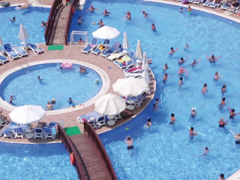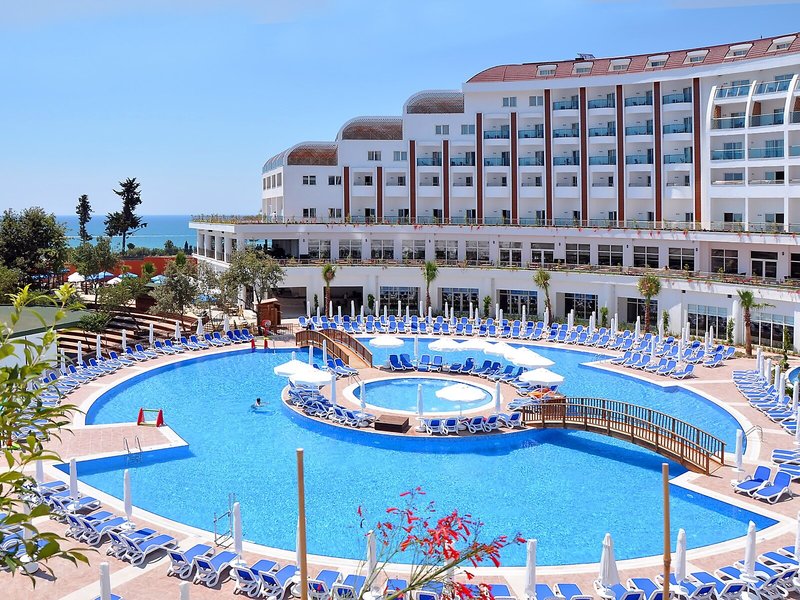 Sport & Fitness: Neben Innen- und Außenpools gibt es einen Kinderbadebereich. Pure Tiefenentspannung im Whirlpool, Vergnügen auf der Wasserrutsche und erfrischende Getränke an der Poolbar – die Gäste werden erleben, wie abwechslungsreich der Wasserspaß sein kann. Eine Sonnenterrasse, Liegestühle und Schirme sind vorhanden. Das Haus bietet ein umfangreiches Outdoor-Sportprogramm mit Radfahren/Mountainbiking, Tennis, Beachvolleyball, Volleyball, Basketball, Bogenschießen und Reiten. Eine Vielzahl an Sportarten steht zur Auswahl, darunter Wassersportmöglichkeiten wie Windsurfen, Jetskifahren, Tretbootfahren, Bananenbootfahren, Kanufahren, Segeln, Katamaranfahren, Kajakfahren, Tauchen und Aqua-Fitness und gegen Gebühr Wasserskifahren. Das Hotel bietet Sportfreunden auch viele Aktivitäten im Innenbereich, nämlich ein Fitnessstudio, Tischtennis, Billard, Darts, Gymnastik und Aerobic. In der Unterbringung werden verschiedene Wellnessangebote wie Spa, Sauna, Dampfbad, Hammam, Schönheitssalon und Massage-Anwendungen offeriert. Zu den weiteren Freizeitangeboten zählen ein Animationsprogramm, ein Miniclub und eine Disco.