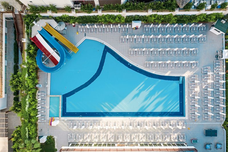 - 1 Pool: Süßwasser, Wasserrutschen: 3 (ca. 1.4.-31.10., stundenweise in Betrieb), Sonnenschirme, Liegen, Badetuch