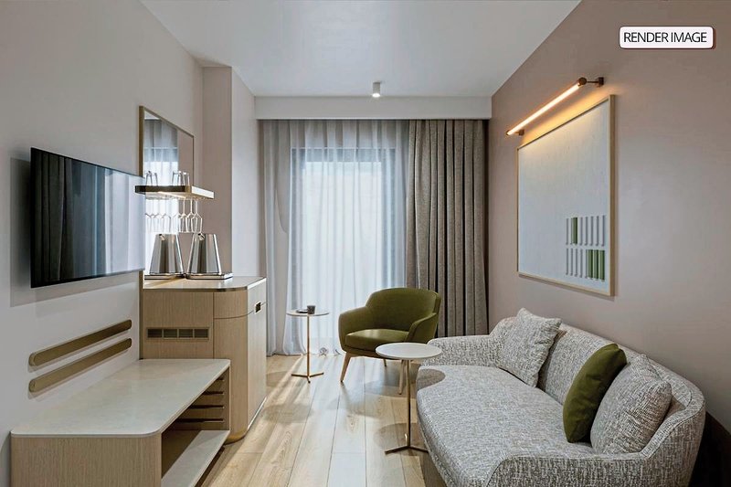 - 26-30 m², Junior Suite, s prepojovacími dverami, výhľad na more, posteľná bielizeň, uteráky a matrace vyrobené zo 100% organickej bavlny, samostatná spálňa, samostatná obývacia izba, manželská posteľ, rozkladacia pohovka, 1 kúpeľňa, sprchovací kút, WC, župan, papuče, fén, kozmetické zrkadlo, laminátová podlaha, individuálne ovládateľná klimatizácia, minibar (dopĺňaný denne), nealkoholické nápoje, pivo, trezor, TV, rýchlovarná kanvica, káva/čaj, balkón