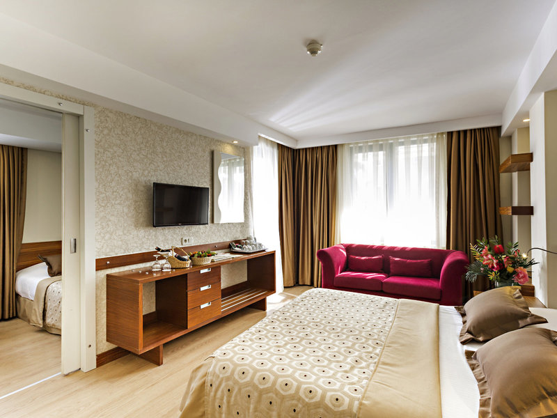- Junior suita s výhľadom na more (JSM1), junior suita, v hlavnej budove, výhľad na more, cca 28 m², posledná úplná rekonštrukcia 2014, posledná čiastočná rekonštrukcia 2014, celkový počet izieb v tomto type izby: 2, rozloženie: obývacia izba izba, 1 spálňa, detská postieľka: bez príplatku , klimatizácia: zadarmo, v závislosti od sezóny, individuálne nastaviteľná, podlaha: laminát, trezor: zadarmo, príslušenstvo na prípravu kávy/čaju, rýchlovarná kanvica, minibar: zadarmo, voda: zdarma, plnenie minibaru: denne, telefón, Internet: WLAN/WiFi: zdarma Poplatok, TV: plochá obrazovka, nemecké kanály, satelitná TV, izbová služba: denne, za poplatok, upratovanie: denne, bez poplatku, sprcha, WC, papuče: bez poplatku, sušič vlasov, kozmetické zrkadlo, balkón: s posedením
