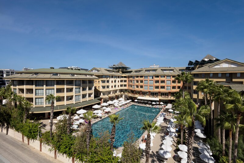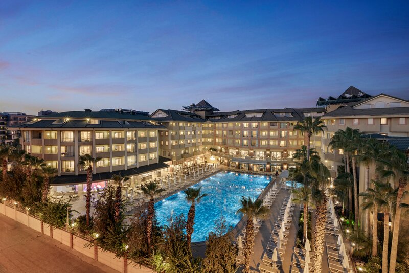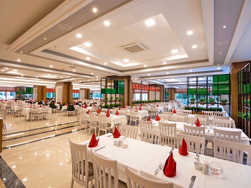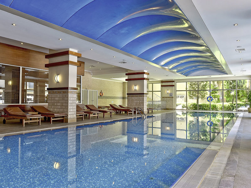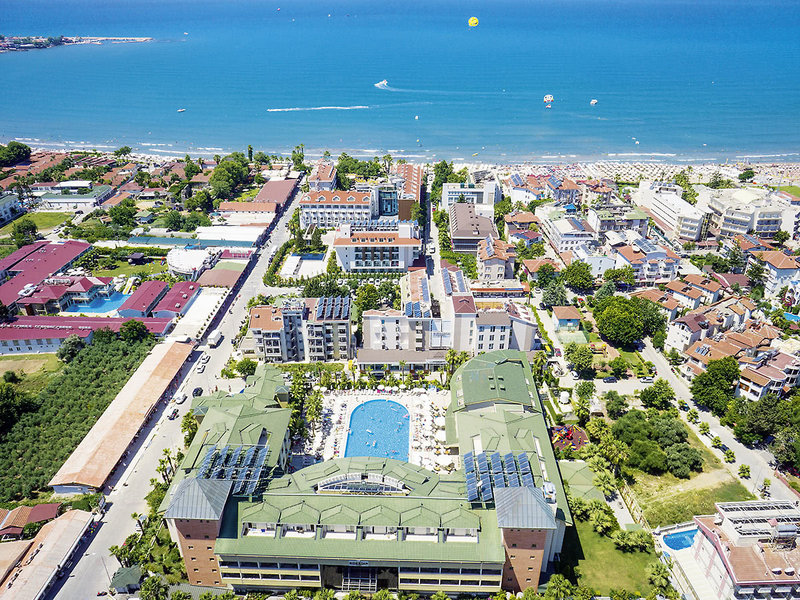 Ausstattung: Hotel der gehobenen Mittelklasse, bestehend aus einem Haupt- und Wohngebäude. Gartenanlage, Hauptpool, Rutschenpool (stdw.), Sonnenterr., Liegen, Schirme, Badetücher. Empfangshalle, Lobbybar, Aufenthaltsraum, Internetecke, Restaurant, 3 À-la-carte-Restaurants (Fisch, osmanische Küche, italienisch); von November-März 1 À-la-carte-Restaurant(Fisch), Bars, Minimarkt, Friseur, Diskothek. Landeskategorie: 5 Sterne, 228 Zimmer, 5 Etagen, 2 Lifte im Haupthaus, 1 Lift im Wohngebäude.