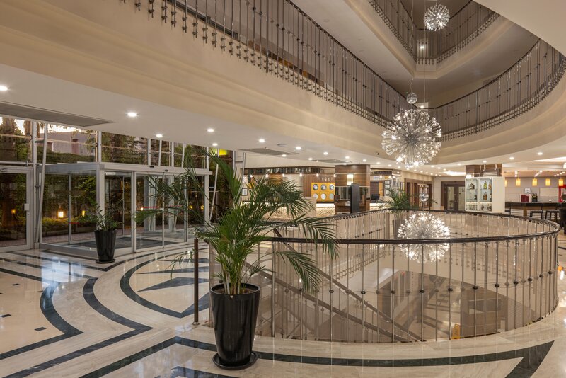 Vybavenie: Hotel vyššej strednej triedy, pozostávajúci z hlavnej budovy a obytnej budovy. Záhrady, hlavný bazén, šmykľavkový bazén (hodinu), slnečná terasa, ležadlá, slnečníky, plážové osušky. Recepčná hala, lobby bar, salónik, internetový kútik, reštaurácia, 3 à la carte reštaurácie (ryba, osmanská kuchyňa, talianska); od novembra do 1. marca à la carte reštaurácia (ryba), bary, minimarket, kaderníctvo, diskotéka. Národná kategória: 5 hviezdičiek, 228 izieb, 5 poschodí, 2 výťahy v hlavnej budove, 1 výťah v obytnej budove.