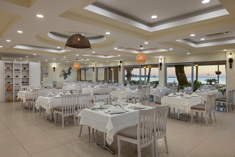 Jedlo a pitie: all inclusive: raňajky formou bufetu, obedy a večere studený/teplý bufet, voliteľne raz za pobyt večera v jednej z 3 à la carte reštaurácií (s rezerváciou; od novembra do marca v rybej reštaurácii, minimálny pobyt 7 dní)