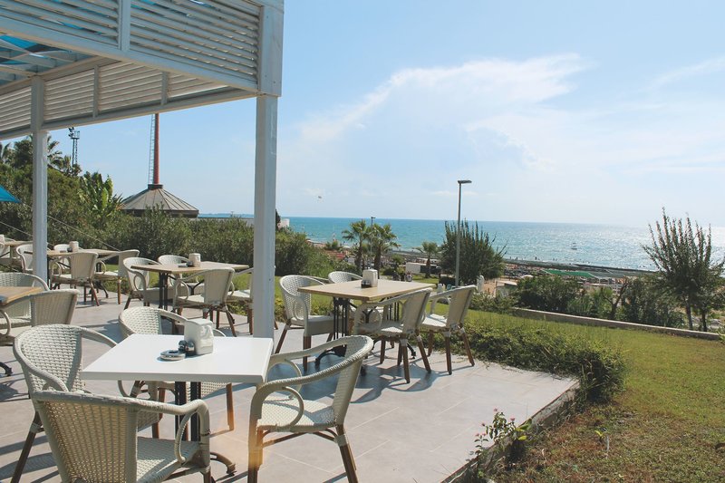 Ausstattung: Die moderne, weitläufige Hotelanlage verfügt über ein U-förmiges Gebäude mit insgesamt 88 Zimmern auf vier Etagen (Lifts vorhanden). Zu den Hoteleinrichtungen zählen die freundlich gestaltete Empfangshalle mit Rezeption und einladenden Sitzgruppen, zwei Bars, LCD Sat.-TV-Ecke, das Buffetrestaurant mit Terrasse, verschiedene Geschäfte und Friseur (jeweils gegen Gebühr), Fitnessraum und Hamam mit Sauna. In der Gartenanlage befindet sich der Süßwasser-Swimmingpool (mit separatem Kinderbecken) mit einer Wasserrutsche (stundenweise und wetterbedingt im Ermessen des Hoteliers), Sonnenterrasse und Pool-/Snackbar. Am Pool und am Strand mit Snackbar sind Liegen und Sonnenschirme für unsere Gäste inklusive, Badetücher gegen Gebühr.