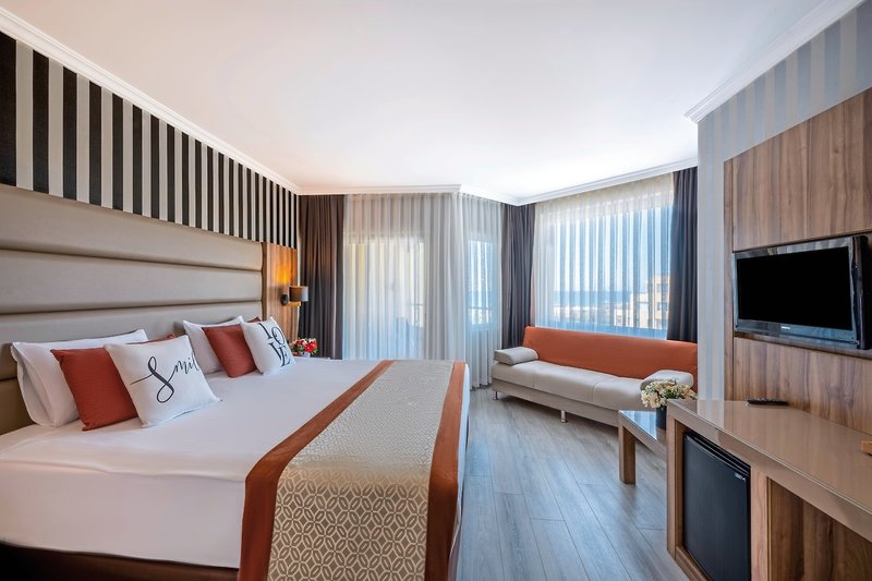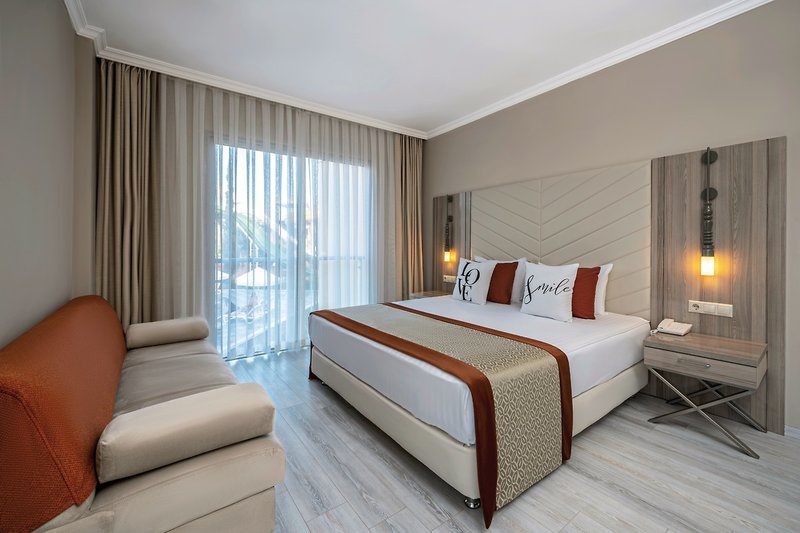 - 36-40 qm, Familien, mit Verbindungstür, Meerblick, 2 separate Schlafzimmer, 2 Einzelbetten, 1 Doppelbett, Dusche, Badeslipper, Haartrockner, Laminatboden, Klimaanlage, zentral gesteuert, Minibar, Auffüllung regelmäßig, Softdrinks, Mineralwasser, Bier, Wasser, Safe, TV (Sat-TV), Wasserkocher, Kaffee/Tee, Balkon (möbliert)