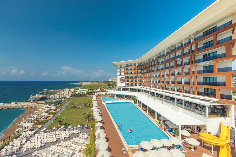 Ausstattung: Das luxuriöse Hotel beherbergt 250 Zimmer verteilt auf sechs Etagen. In der Empfangshalle befindet sich die Rezeption mit gemütlichen Sitzmöglichkeiten und eine Lobbybar. Wi-Fi ist in der gesamten Anlage inklusive. Zu den Einrichtungen zählen ein Buffetrestaurant mit Terrasse, diverse À-la-carte-Restaurants (Einmal bei mindestens 7 Nächten inklusive, Reservierung ist erforderlich), verschiedene Bars. Geschäfte und Friseur (jeweils gegen Gebühr), sowie Konferenzräume und ein Hallenbad (saisonbedingt beheizt). In der Außenanlage befindet sich ein großer Süßwasser-Swimmingpool, separate Kinderbecken mit zwei Wasserrutschen und Sonnenterrasse. Liegen, Sonnenschirme und Badehandtücher sind hier und am Strand mit einer Beachbar inklusive.