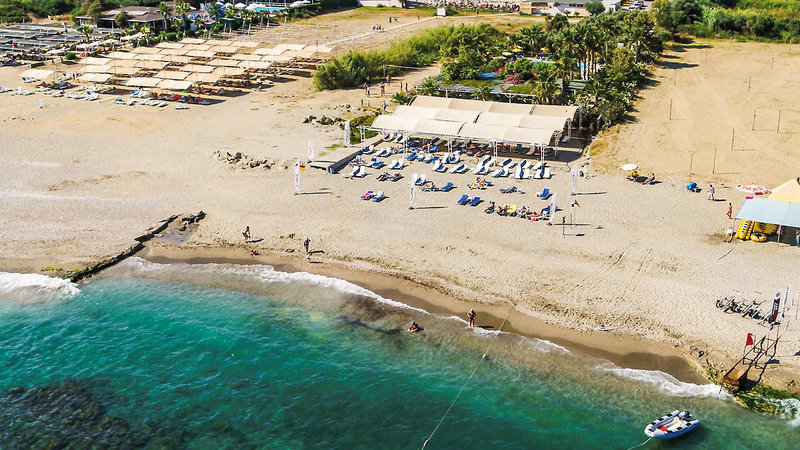 - Sand-/Kieselstrand: flach abfallend, gehört zur Anlage, Sonnenschirme, Liegen, Strandtuch/Badetuch, Shuttleservice zum Strand (ca. 27.4.-31.10.), stündlich, 10-18 Uhr, ca. 27.4.-31.10.