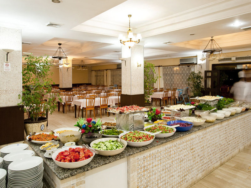 - Hlavná reštaurácia hlavná reštaurácia: Kuchyňa: medzinárodná, turecká, ryby/morské plody, grilované jedlá, detské menu: v cene All Inclusive, vegetariánske jedlá: v cene All Inclusive, bufet, zdarma, v cene All Inclusive, apríl - október; sezónne; Ak to počasie dovolí, denne 7:00 - 12:30, s terasou, na pláži, vysoká stolička