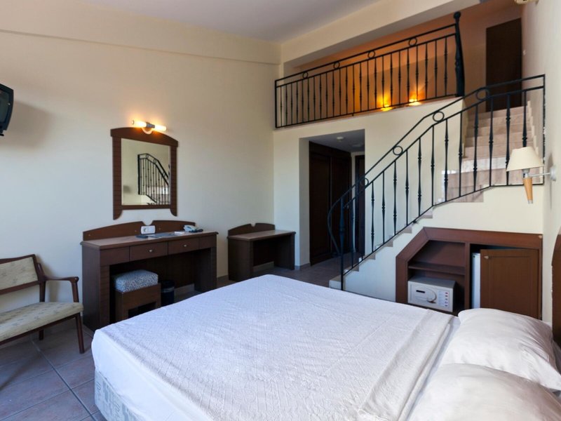 - Maisonette Room (FZX1), Maisonette, im Hauptgebäude, Gartenseite, Gartenblick, ca. 40 m², letzte Komplettrenovierung 2020, letzte Teilrenovierung 2021, Gesamtanzahl der Räume in diesem Zimmertyp: 1, Aufteilung wie folgt: kombiniertes Wohn-/Schlafzimmer, Maisonette, 1 Schlafzimmer, 4 Einzelbetten (190x200cm), Babybett: ohne Gebühr, Klimaanlage: ohne Gebühr, individuell regelbar, kalt, warm, Heizung: individuell regelbar, Fußboden: Laminat, Safe: Barzahlung, pro Tag ca. 1 EUR, Minibar: ohne Gebühr, Wasser: ohne Gebühr, Minibarauffüllung: 09:00 Uhr - 16:00 Uhr, Telefon, Fernseher: Flatscreen, im Wohnbereich, deutsches Programm, Deutsche Welle, Sat-TV, Radio, Reinigungsservice: täglich 09:00 Uhr - 16:00 Uhr, ohne Gebühr, Dusche, WC, Slipper, Bad durch Glaswand getrennt, Föhn, Kosmetikspiegel, Balkon: mit Sitzgelegenheit