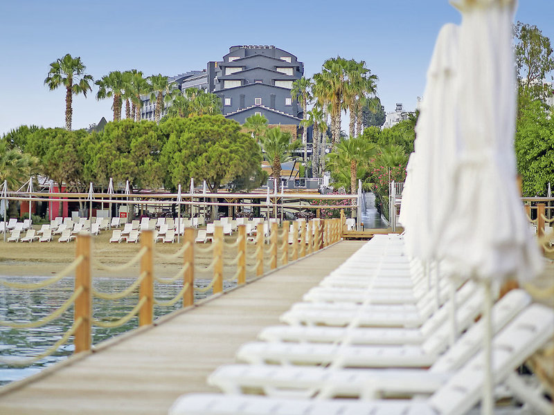 Strandvergnügen pur – das Hotel Thalia Unique hat direkten Zugang zum feinen Sandstrand! Genießen Sie ungetrübtes Badeglück unter der Sonne der türkischen Riviera und lassen Sie Stress und Alltag hinter sich. Für Action sorgt ein buntes Wassersportprogramm am Strand.