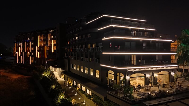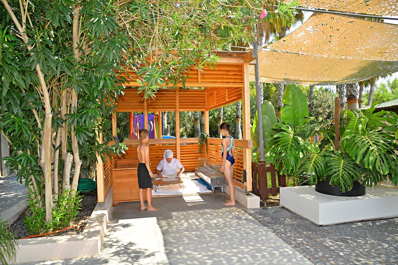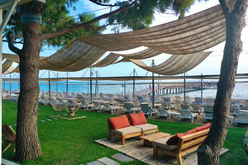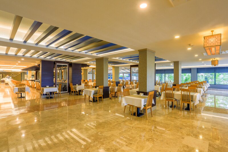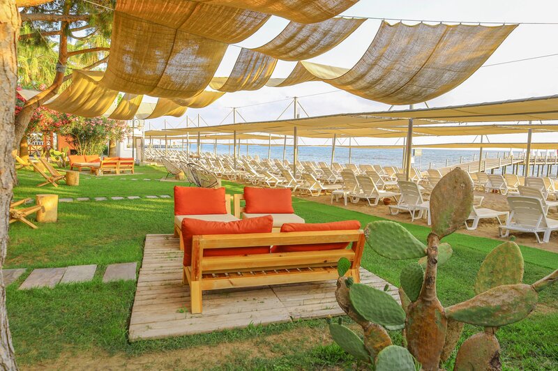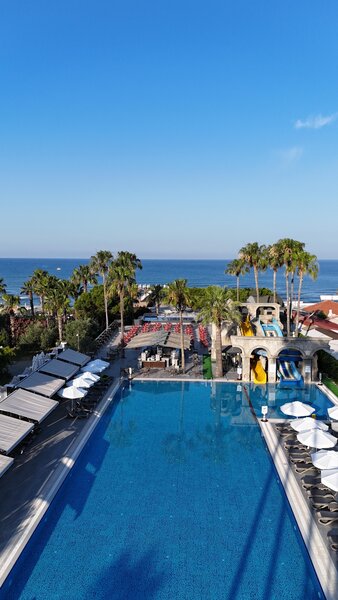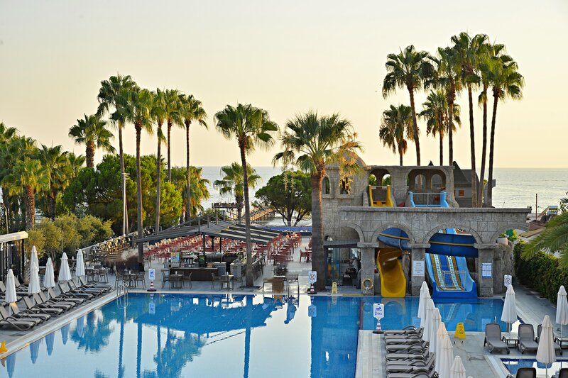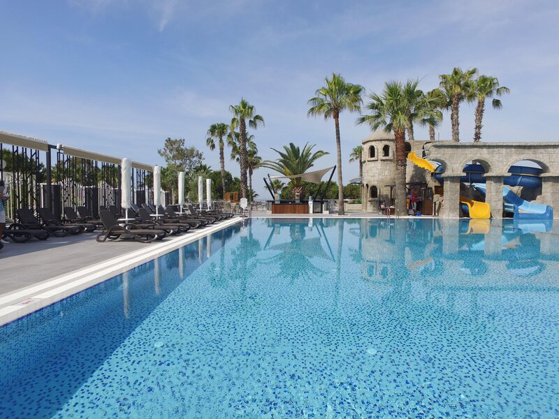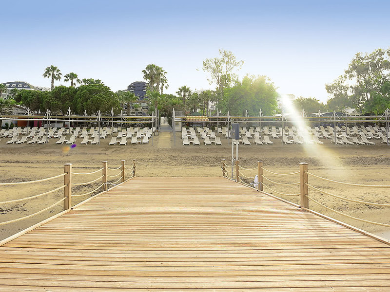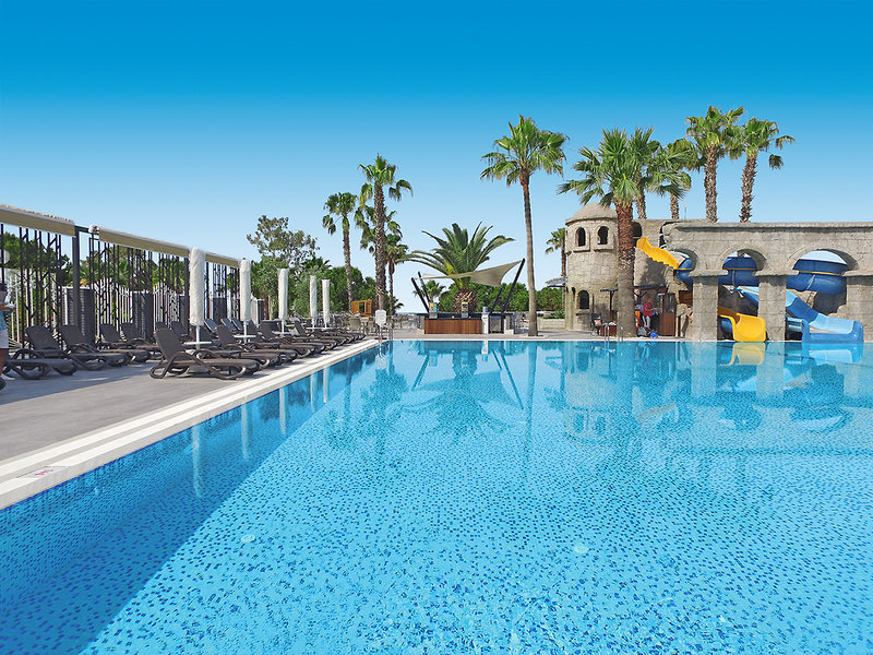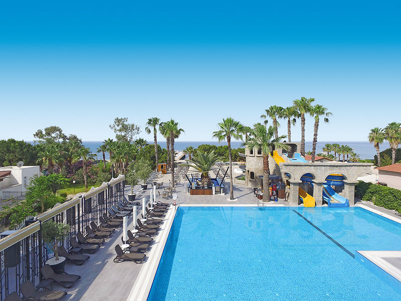 Vybavenie: Rekreačný hotel vyššej strednej triedy. Záhrady s bazénom, detský bazén, slnečné terasy, 2 tobogany (k dispozícii každú hodinu/v závislosti od počasia). K dispozícii sú ležadlá, slnečníky, vankúše a plážové osušky. Bar pri bazéne. Recepcia, lobby bar, Wi-Fi, salónik, reštaurácia s terasou, 2 reštaurácie à la carte (rybie jedlá, turecká kuchyňa; nutná rezervácia) a obchody. Národná kategória: 5 hviezdičiek, 238 izieb, 5 poschodí, 3 výťahy.