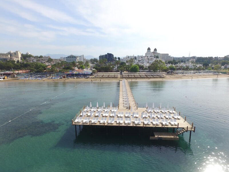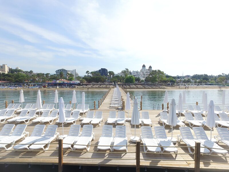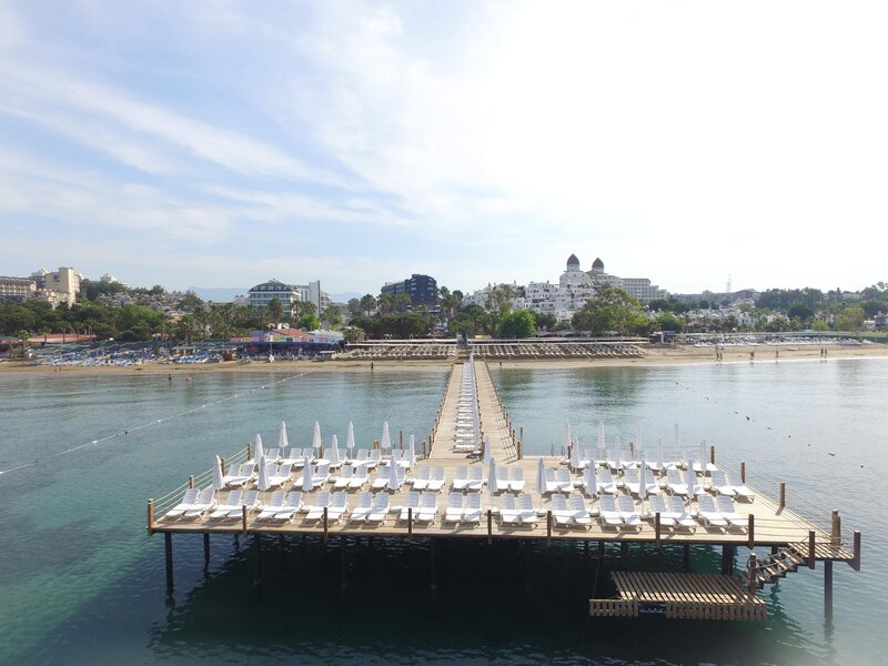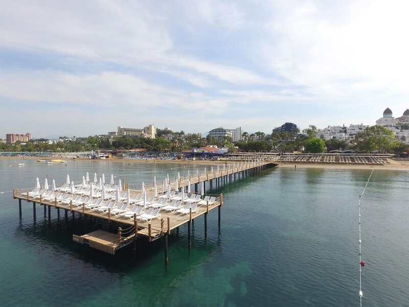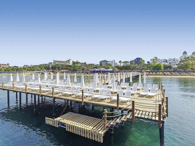 Poloha: Priamo na širokej, mierne sa zvažujúcej piesočnatej pláži s mólom na kúpanie. Nákupné a zábavné možnosti cca 300 m Do historického centra Side cca 3 km.