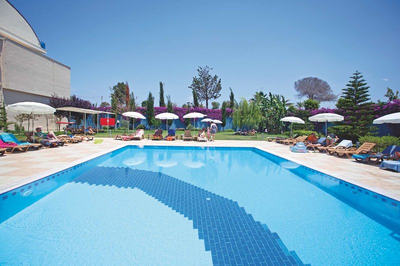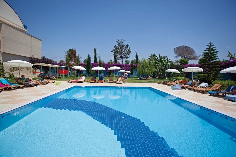 Ausstattung: Das moderne Urlaubsdomizil verfügt über 176 Zimmer, die sich auf fünf Etagen verteilen (Lift vorhanden). Zu den allgemeinen Einrichtungen zählen eine geschmackvoll gestaltete Empfangshalle mit Rezeption, gemütlichen Sitzecken und Lobbybar, das Buffetrestaurant, ein Hallenbad und das Wellnesszentrum. Eine Spielecke, Friseur sowie mehrere Geschäfte gegen Gebühr. Wi-Fi im Empfangsbereich und auf den Zimmern inklusive. Ein großer Süßwasser-Swimmingpool mit Sonnenterrasse, Relaxpool, separatem Pool für Kinder und die Poolbar befinden sich in der gepflegten Gartenanlage. Liegen, Auflagen, Badetücher und Sonnenschirme sind am Pool und am hoteleigenen Strandabschnitt (Beachbar) inklusive.