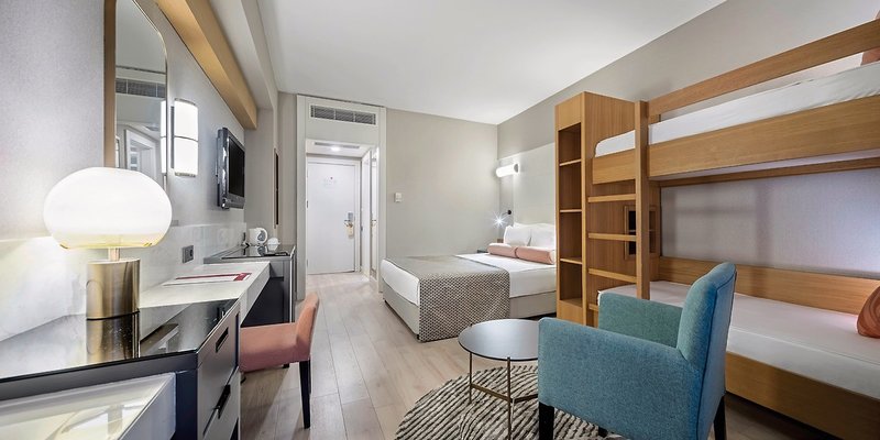 - 21-25 qm, Familien, Großraum, Doppelbett, Etagenbett, Dusche, Bademantel, Haartrockner, Laminatboden, Klimaanlage, (stundenweise), zentral gesteuert, Minibar, Auffüllung regelmäßig, Safe, 1 TV (Sat-TV), Wasserkocher, Kaffee/Tee, Balkon