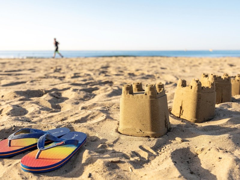- Strand: Sand, feinsandig, Liegen, Liegestühle, Sonnenschirme