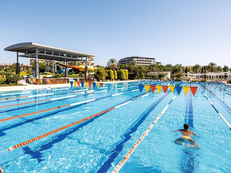 - Pools: 7 (Aquapark: April - Oktober, ohne Gebühr / Pool / 50m-Sport-Pool: Liegestühle / Pool: ohne Gebühr / Kinderpool / Relaxpool / Pool)