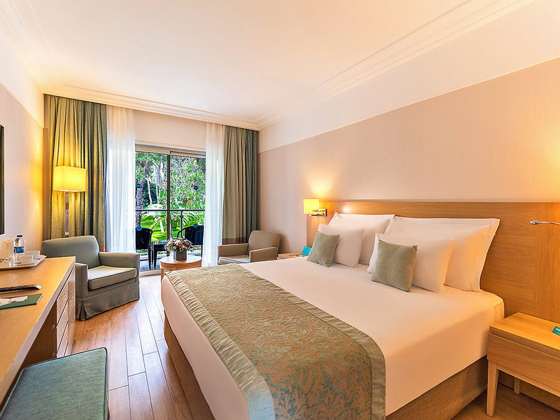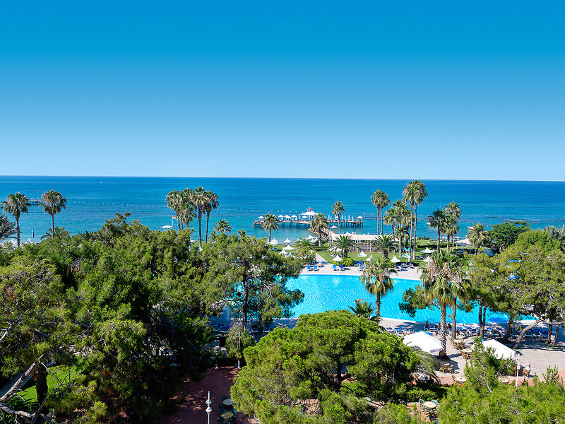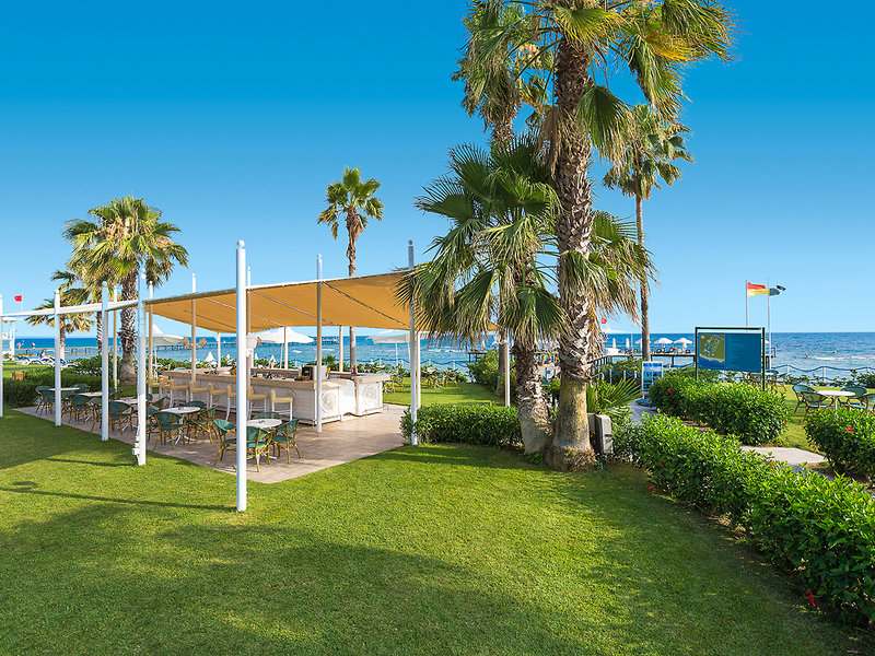 Ausstattung: Beliebte Ferienanlage inmitten eines Pinienwaldes, bestehend aus Haupthaus und Nebengebäude. Swimmingpool, Relaxpool (ab 16 Jahren), Aquapark mit 3 Wasserrutschen (stdw., wetterabh.), Sonnenterrasse. Liegen, Schirme und Badetücher am Pool und am Strand. Pool-/Strandbar. Empfangshalle, Rezeption, WLAN, in der Lobby und am Pool, Hauptrestaurant, 4 À-la-carte-Restaurants (italienisch, asiatisch, Steakhouse, 'Bougainvillea": international; gegen Gebühr, Reservierung erforderlich), mehrere Bars. Gameland (gegen Gebühr), Geschäfte, Minimarkt, Friseur, Arztservice (gegen Gebühr), Patisserie. Landeskategorie: 5 Sterne, 486 Zimmer, Lifte.