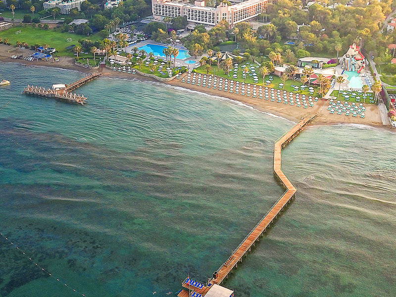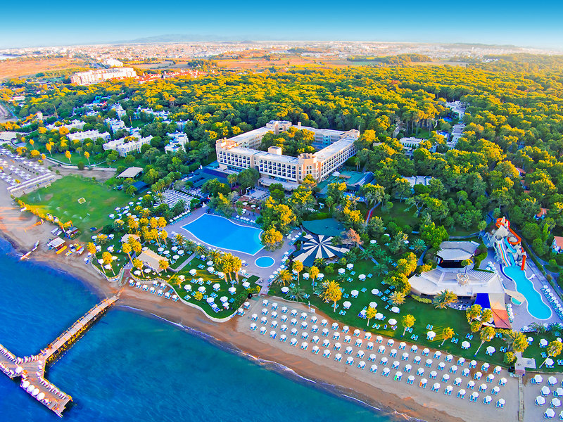 Vybavenie: Obľúbený prázdninový komplex uprostred borovicového lesa pozostávajúci z hlavnej budovy a prístavby. Bazén, relaxačný bazén (od 16 rokov), aquapark s 3 toboganmi (hodinové, v závislosti od počasia), slnečná terasa. Ležadlá, slnečníky a plážové osušky pri bazéne a na pláži. Bar pri bazéne/pláži. Lobby, recepcia, Wi-Fi, v lobby a pri bazéne, hlavná reštaurácia, 4 à la carte reštaurácie (talianska, ázijská, steakhouse, 'Bougainvillea': medzinárodná; za poplatok, nutná rezervácia), niekoľko barov. Gameland ( za poplatok), obchody, minimarket, kaderníctvo, služby lekára (za poplatok), cukráreň Národná kategória: 5 hviezdičiek, 486 izieb, výťahy.