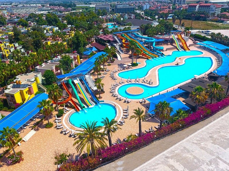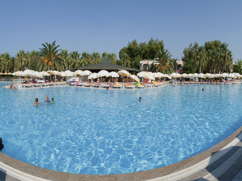 Ausstattung: Garten, Pool, Kinderpool, Wasserrutsche. Liegen, Schirme, Auflagen, Handtücher am Pool und am Strand (geg. Geb.), Pool-/Snackbar. Empfangshalle, Rezeption, Lobby-Bar, Lounge. Restaurant (Buffet) mit nationalen, italienischen und mediterranen Speisen, Terrasse, 8 Bars, Kiosk, Minimarkt, Shop, Friseur, Diskothek. 652 Zimmer, 4 Etagen, Lift.