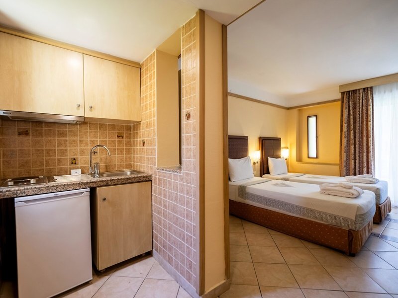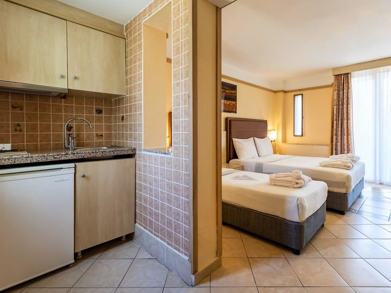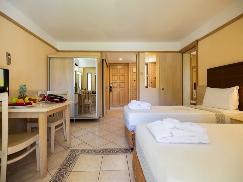 Rodinný apartmán (2 spálne): Minibar (za poplatok). Uteráky. TV, telefón, internet (za poplatok), trezor (za poplatok). Kúpeľňa, fén. Max. 6 osôb.