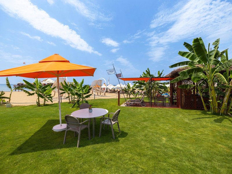 - Pláž: piesočná, mierne sa zvažujúca, dĺžka pláže: cca 300 m, hotelová vlastná, ležadlá: zdarma, slnečníky: zdarma