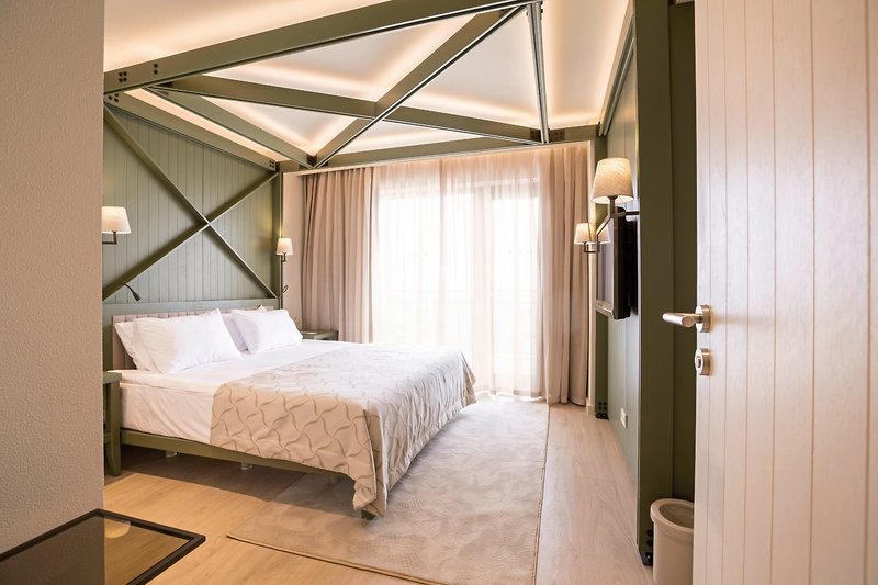 - 31-35 qm, Doppel, Hauptgebäude, Meerblick, Bettwäsche, Handtücher und Matratzen aus 100% Bio-Baumwolle, Doppelbett, Sofabett, Dusche, WC, Bademantel, Badeslipper, Haartrockner, Kosmetikspiegel, Laminatboden, Klimaanlage, Minibar, Auffüllung täglich, Safe, 1 TV (Sat-TV, Flachbildschirm), Wasserkocher, Kaffeemaschine, Kaffee/Tee, Balkon, Aufdeck-Service