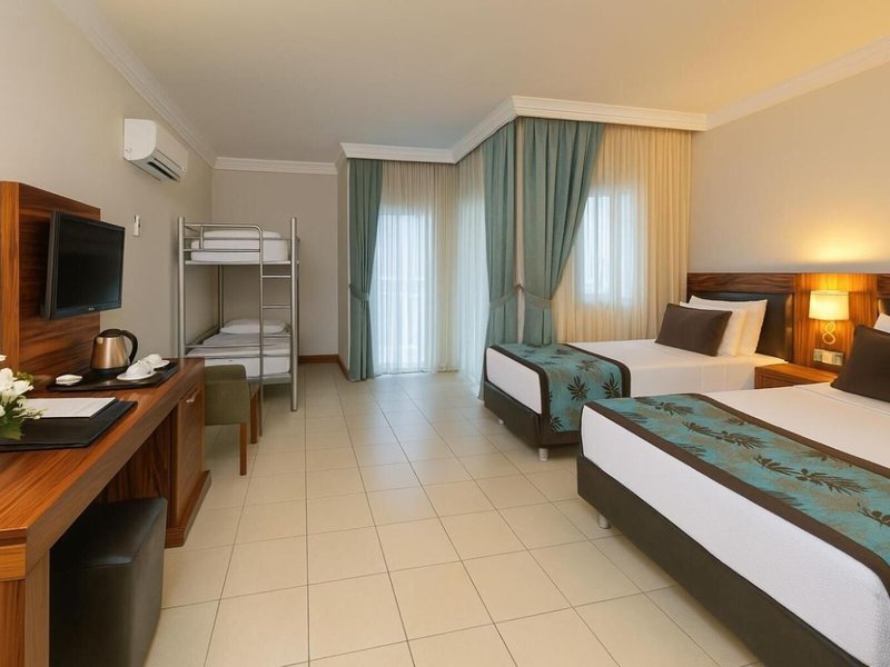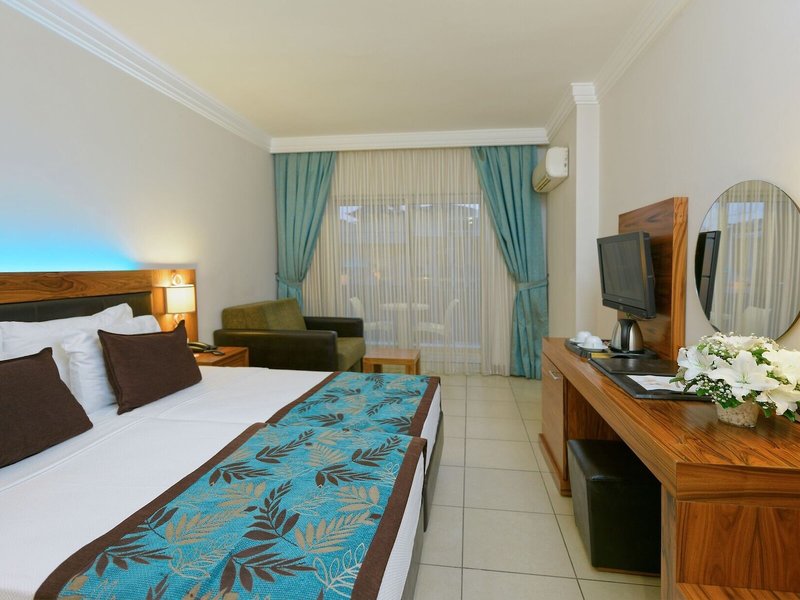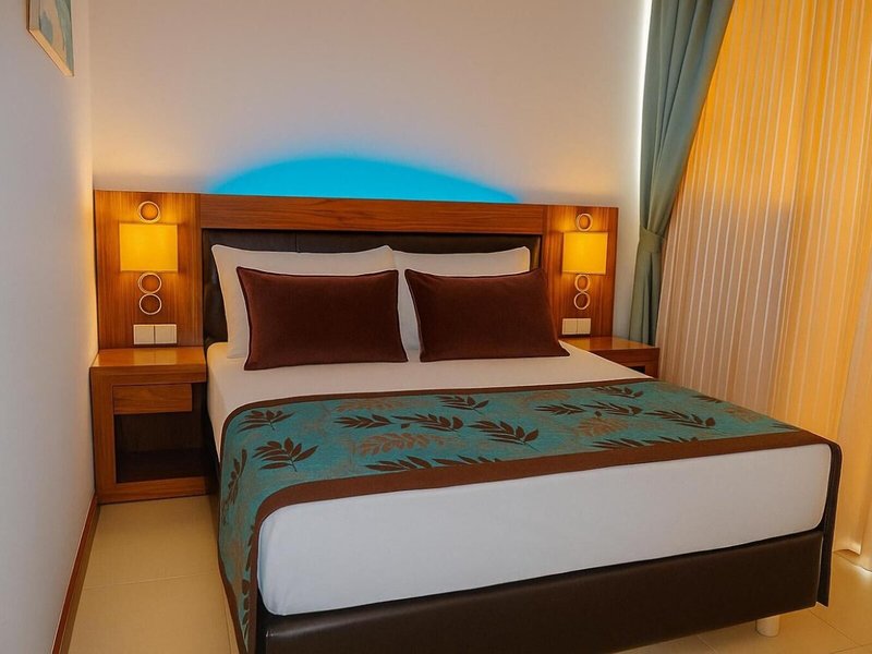Poloha a okolie Rezort je dobrým východiskovým bodom pre plážových dovolenkárov, aby lepšie spoznali Alanyu: Rezort sa nachádza v centre, len 150 m od piesočnatej pláže, s rôznymi voľnočasovými aktivitami v okolí. Rôzne reštaurácie, bary a obchody sú len pár metrov od ubytovania. Letisko Antalya (AYT) je vzdialené asi 120 km.