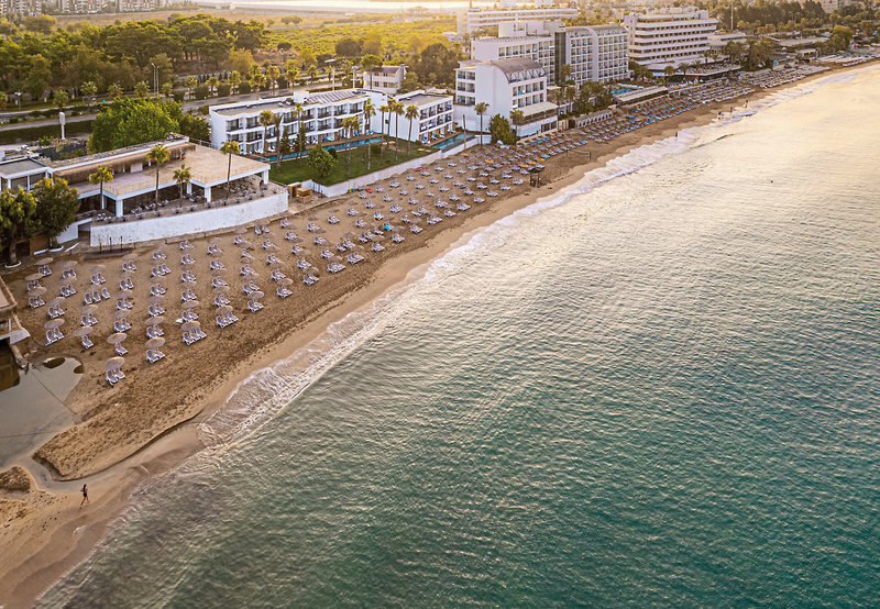 - Sandstrand: leicht abfallend, gehört zur Anlage, ca. 185 m lang, Sonnenschirme, Liegen, Strandtuch/Badetuch
