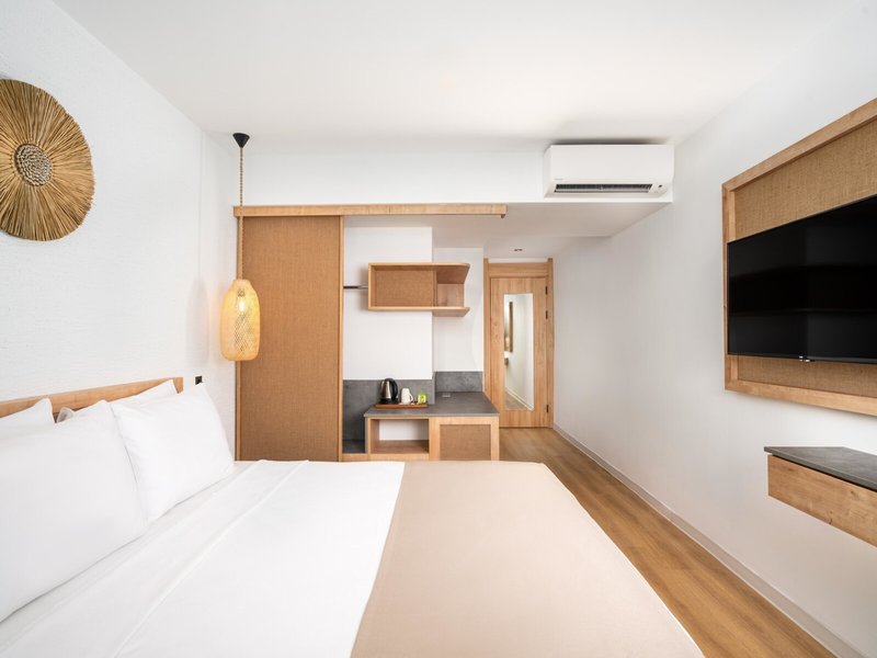 - Double Standard Room (DZX1), Doppelzimmer, im Hauptgebäude, Meerseite, ca. 24 m², Babybett: ohne Gebühr, Klimaanlage: ohne Gebühr, Juni - Oktober; saisonabhängig; wetterabhängig, zentral gesteuert, Fußboden: Laminat, Safe: ohne Gebühr, Minibar: ohne Gebühr, Softdrinks: ohne Gebühr, Wasser: ohne Gebühr, Telefon, Internet: WLAN/WiFi: ohne Gebühr, Fernseher: Sat-TV, WC, Föhn, Balkon: mit Sitzgelegenheit