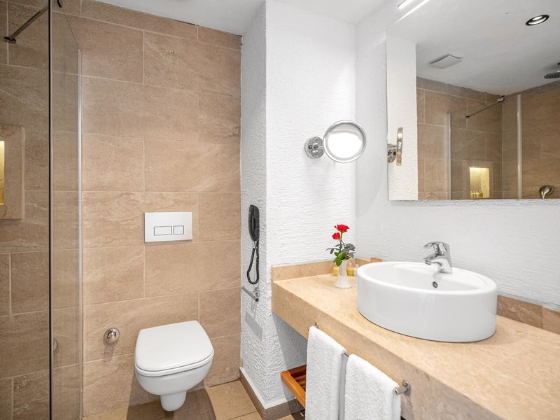 - Superior Room (DZM1), Doppelzimmer, im Nebengebäude, Meerblick, ca. 35 m², Babybett: ohne Gebühr, Klimaanlage: ohne Gebühr, Juni - Oktober; saisonabhängig; wetterabhängig, zentral gesteuert, Fußboden: Fliesenboden, Safe: ohne Gebühr, Kaffeemaschine, Kaffee-/Teezubereiter, Minibar: ohne Gebühr, Softdrinks: ohne Gebühr, Wasser: ohne Gebühr, Telefon, Internet: WLAN/WiFi: ohne Gebühr, Fernseher: Sat-TV, separate Dusche, WC, Bademantel: ohne Gebühr, Föhn, Balkon: mit Sitzgelegenheit